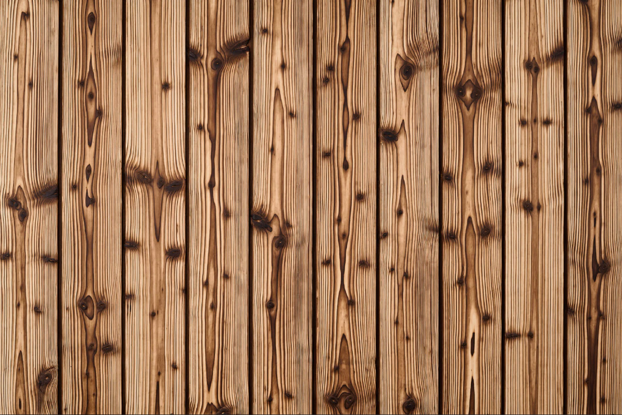Licht, fijn-generfd en vol karakter – vurenhout komt prachtig tot zijn recht met de Yakisugi-techniek. Of het nu binnen wordt gebruikt of in beschutte buitenruimtes, onze gebrande vurenhouten planken bieden een verfijnde textuur en zachte toonnuances die eigentijdse en minimalistische ontwerpen versterken. Ontdek afwerkingen op maat voor interieurbekleding, accentwanden en subtiele buitentoepassingen.